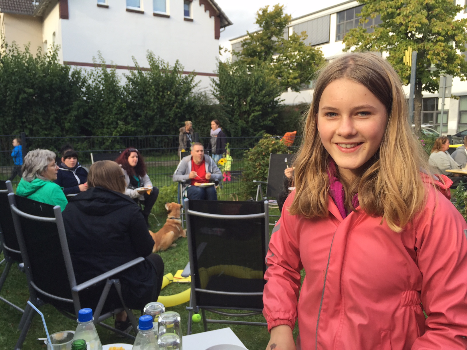 Kinder und Jugendliche aus den Wohnangeboten und viele Kolleginnen und Kollegen genossen den Nachmittag mit Spiel und Musik, gutem Essen und vielen Gesprächen. Auch zahlreiche Nachbarn der Tagesstätte folgten der Einladung der Organisatorinnen Mareike Sendrowski, Kathrin Erwert und Brigitte Handel. Gleich 14 Mitarbeiterinnen und Mitarbeiter der gegenüberliegenden Zweigstelle von Volkswagen Financial Services schauten nach Feierabend vorbei. Aufmerksam informierten sie sich über die Arbeit der Stiftung und kamen mit vielen Gästen ins Gespräch. Eine junge Finanzexpertin zeigt sich beeindruckt von den Räumlichkeiten und der Gastfreundschaft: „Wir sind total offenherzig empfangen worden.“
