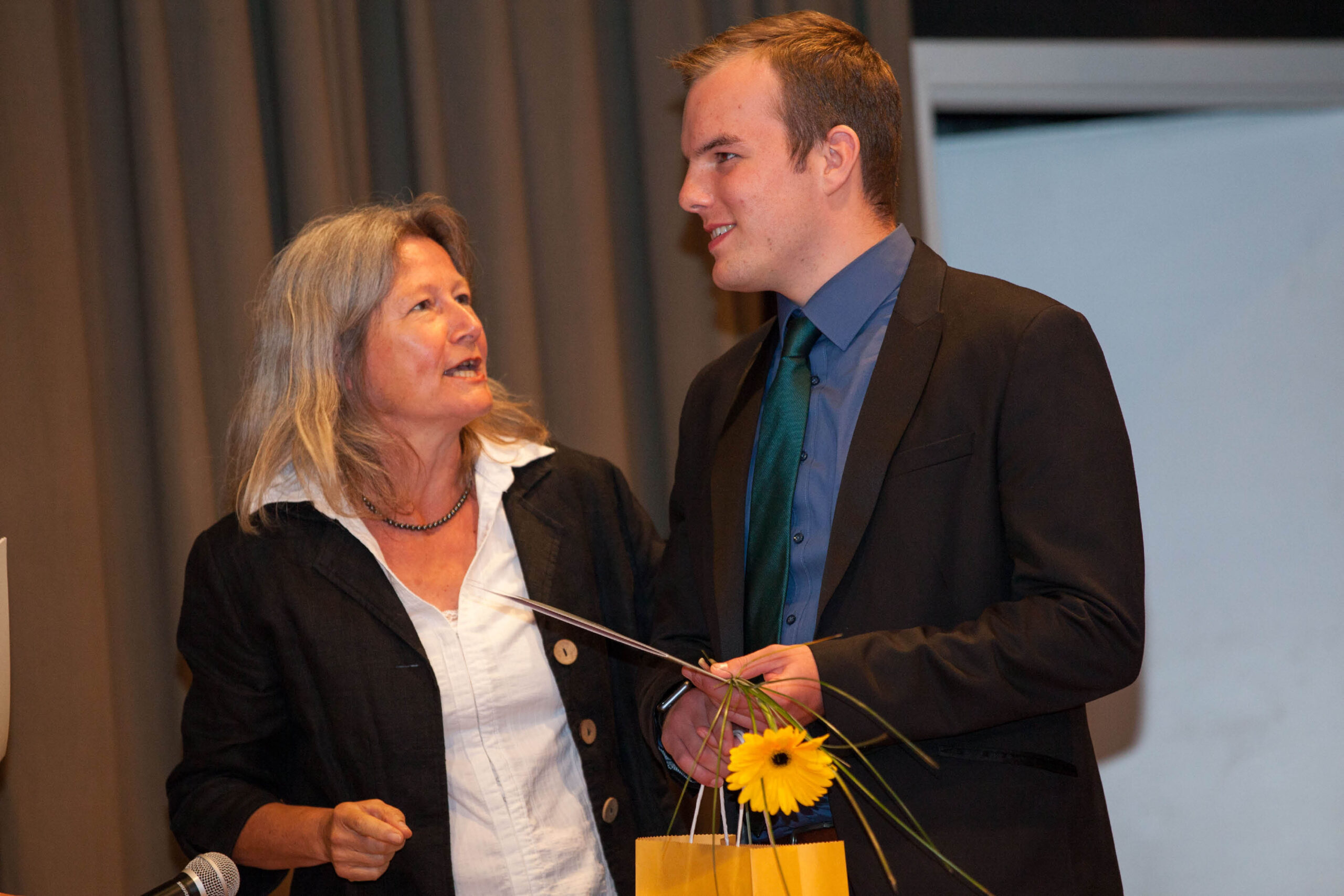 Dafür braucht er ein Abschlusszeugnis – diese wurden schließlich gemeinsam mit einem persönlichen Geschenk feierlich überreicht. Schulleiterin Kirsten Lehmann und ihre Kolleginnen und Kollegen riefen die 19 Absolventen einzeln auf die Bühne und gaben noch einige Anekdoten aus der gemeinsamen Zeit zum Besten. Immer wieder hörte man lautes Lachen aus dem Publikum.