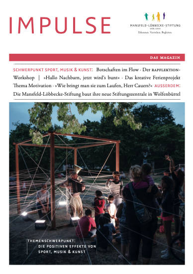 Die neue Ausgabe des Stiftungsmagazins Impulse widmet sich den Themen Sport, Musik und Kunst und steht ab sofort zum Download bereit. Erfahren Sie mehr über die positiven Kräfte von Kreativität, Selbsterfahrung und Bewegung und lernen Sie die vielfältigen Angebote der Stiftung kennen.