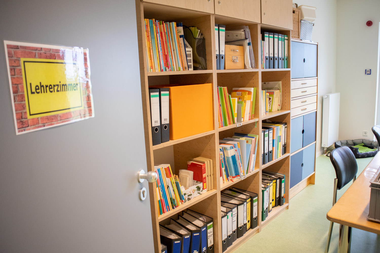 So gibt es zum Beispiel in jedem Schulgebäude mehrere Eingänge, durch die die Lerngruppen in separate Bereiche geführt werden können, berichtet Schulleiterin Kirsten Lehmann. Das großzügige Raumangebot ermöglicht es, ausreichend Abstand zueinander zu halten. Dank separater Türen und Fenster ist jeder Klassenraum gut zu belüften. Die Ausstattung mit zahlreichen Sanitärräumen begünstigt die Einhaltung der Hygienebestimmungen, zum Beispiel das regelmäßige Händewaschen. Die Pausenzeiten sind grundsätzlich versetzt und die Kinder und Jugendlichen spielen in unterschiedlichen Bereichen des Gebäudes oder auf dem Außengelände. Vor und nach jeder Pause desinfizieren die Kinder ihre Hände sowie die Spielgeräte. Grundsätzlich herrscht auf dem gesamten Gelände Maskenpflicht für die Schüler*innen. Immerhin dürfen sie an ihren Plätzen die Masken abnehmen. Die Lehrer*innen tragen seit diesem Schuljahr komfortable durchsichtige Visiere, durch welche die Kinder und Jugendlichen die Möglichkeit haben, Gestik und Mimik des Lehrers besser zu deuten. Das macht einiges leichter, erzählt der stellvertretende Schulleiter Daniel Lonkowski.