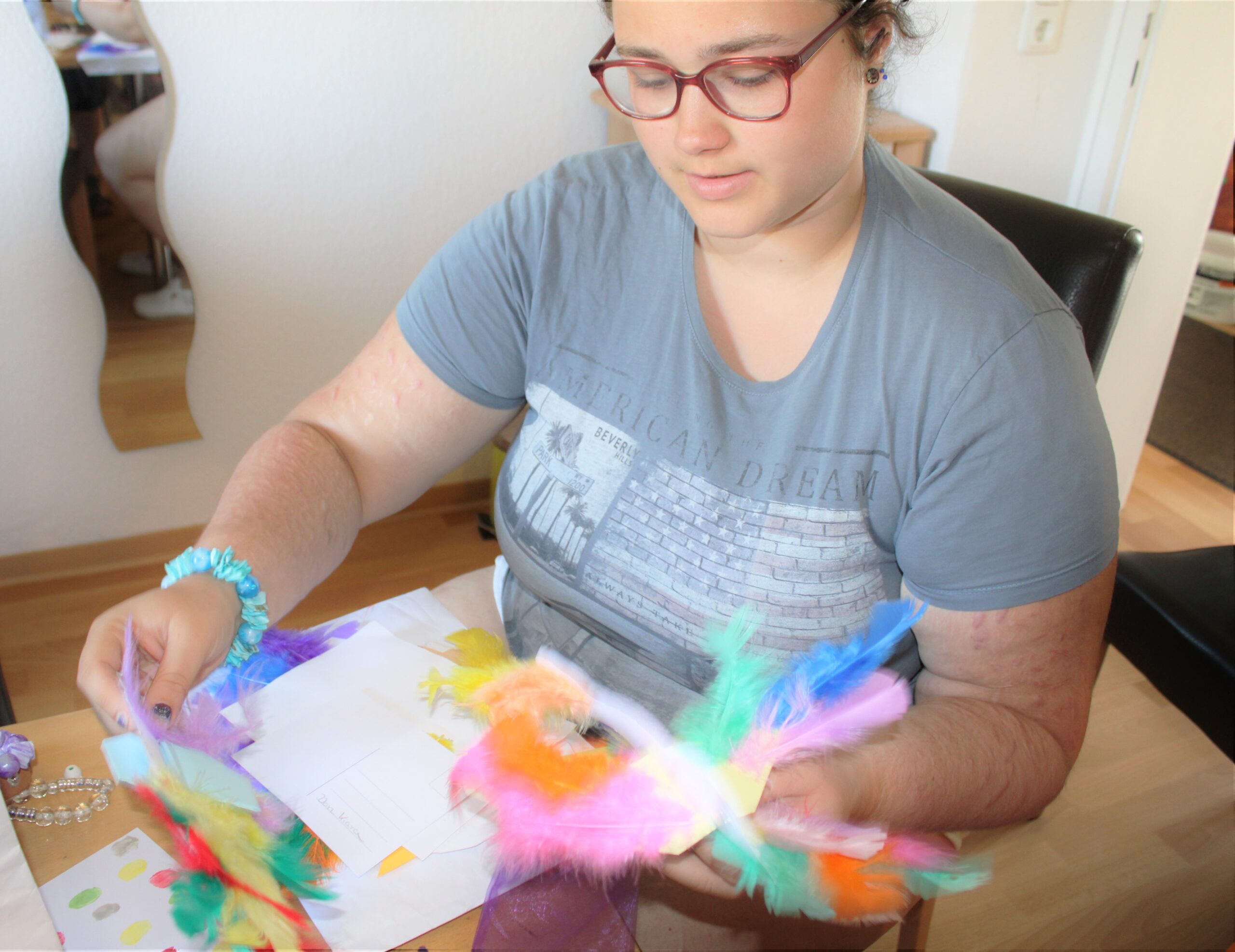 Ergänzend zu dieser etwas anderen Beschäftigungsmöglichkeit, konnten noch weitere positive Nebeneffekte erreicht werden. Die Idee der Bereichsleitung Ute Hilmer und der projektleitenden Mitarbeiterinnen Berina Lingo und Marlene Hübner war, auch die Verbindung zwischen Kindern, Jugendlichen und jungen Erwachsenen in der Stiftung über die Wohnangebote hinweg zu stärken. Denn die Bewohner*innen können gegenseitig voneinander profitieren. So haben sich zum Beispiel einige Brieffreundschaften entwickelt und die Kinderwohngruppen möchten sich mit einer Einladung zum gemeinsamen Grillfest bedanken.