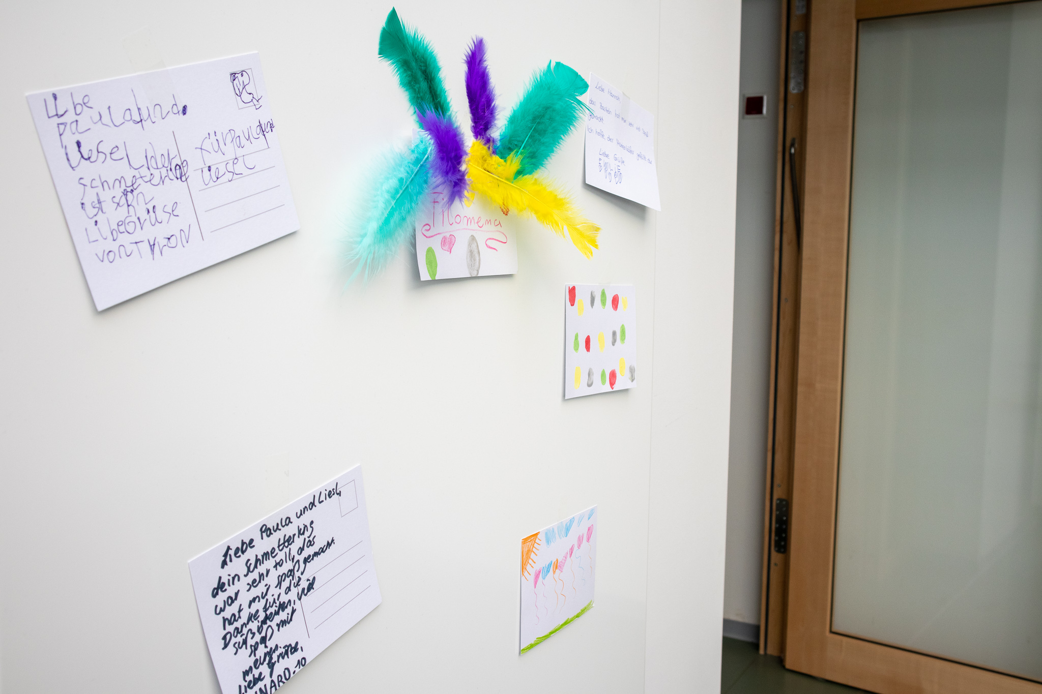 Während der für alle teils sehr ereignislosen Zeiten im Corona-Lockdown sind Brom, Alina, Momo, Filomena und Hannah aus der Individuellen Wohnformen in Salzgitter gemeinsam mit ihren Betreuerinnen kreativ geworden. Insgesamt packten die acht motivierten Kunstpat*innen fast 80 Briefumschläge für die in den Kinderwohngruppen lebenden 4 bis 14 – jährigen. Als diese dann unter Einhaltung der geltenden Corona-Maßnahmen persönlich überreicht wurden, fanden die Kinder darin eine für jeden persönlich gestaltete Einladungs-Postkarte zum Basteln sowie Bastelmaterialien für ausgefallenen Schmetterlinge, Vögel und Marienkäfer sowie eine Antwort-Postkarte, die die Kinder selbst gestalten und an die Kunstpat*innen schicken konnten. Die fertigen Kunstwerke wurden anschließend gesammelt in der Lobby der MLS in Wolfenbüttel ausgestellt (siehe Bildergalerie).