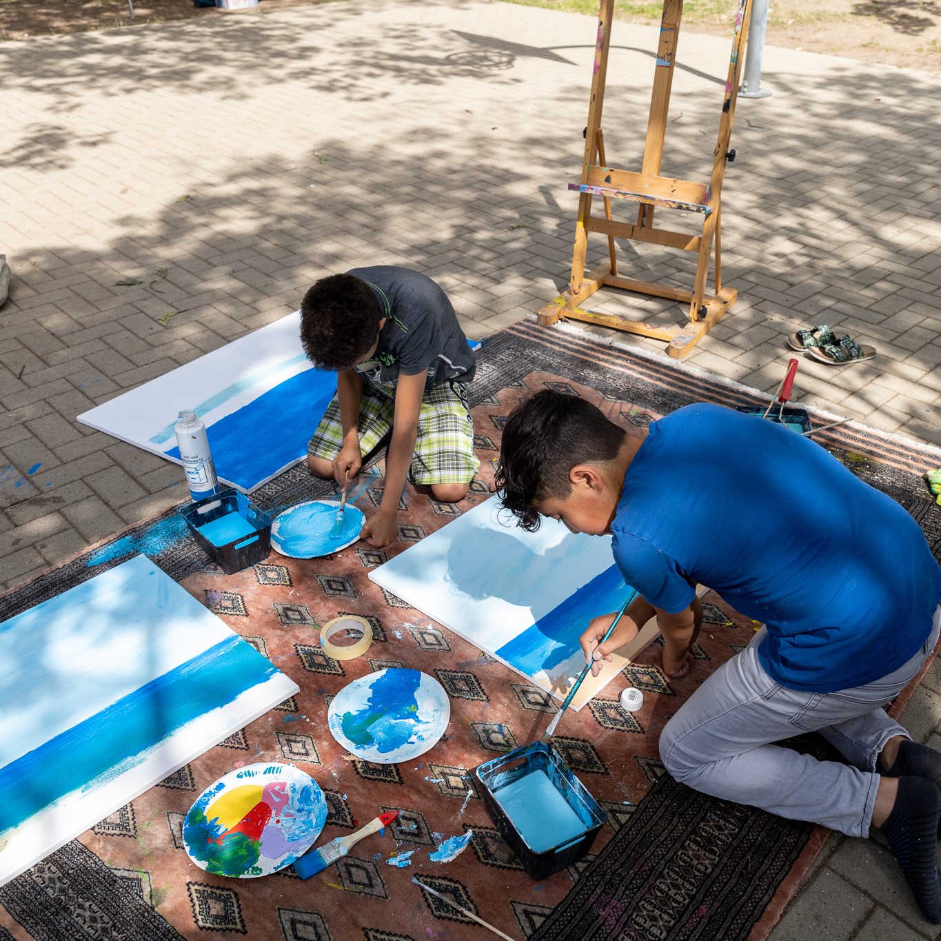 Stiftungsmitarbeiter und Mitinitiator des Projektes Kai-Peter Hain freut sich über den regen Zulauf der Anwohnerfamilien und die Unterstützung der jungen Erwachsenen aus den Individuellen Wohnformen der Stiftung: „Es ist toll zu beobachten wie sich die älteren einbringen und den Kindern zum Beispiel beim Action Painting die Farbe anreichen oder ihnen mit Rat und Tat zur Seite stehen.“ Weiterhin sagt er: „Die Kollegen vom B58 und auch wir haben so viel positives Feedback bekommen – ich glaube wir müssen das in den Herbstferien nochmal machen.“