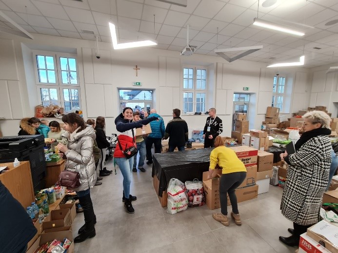In der letzten Woche rief die Stiftung zur Sammlung von Sachspenden für Kinder und Familien auf der Flucht aus der Ukraine auf. Stiftungsmitarbeiterin Ewelina Dzieniszewska initiierte die Aktion in engem Austausch mit Miroslaw Kaolczul, Bürgermeister der polnischen Stadt Augustow. Er wusste genau, welche Hilfsgüter aktuell am dringendsten benötigt werden.