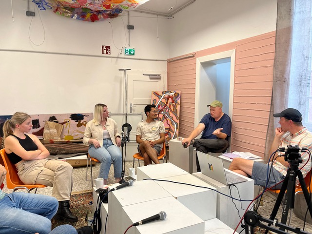 Gemeinsam mit den Koordinatorinnen Tatiana und Somayeh besuchten Anwar, Hassan, Anna und Fatih das Salm-Studio und erzählten von Schwierigkeiten und Erfolgserlebnissen beim Erlernen der deutschen Sprache.