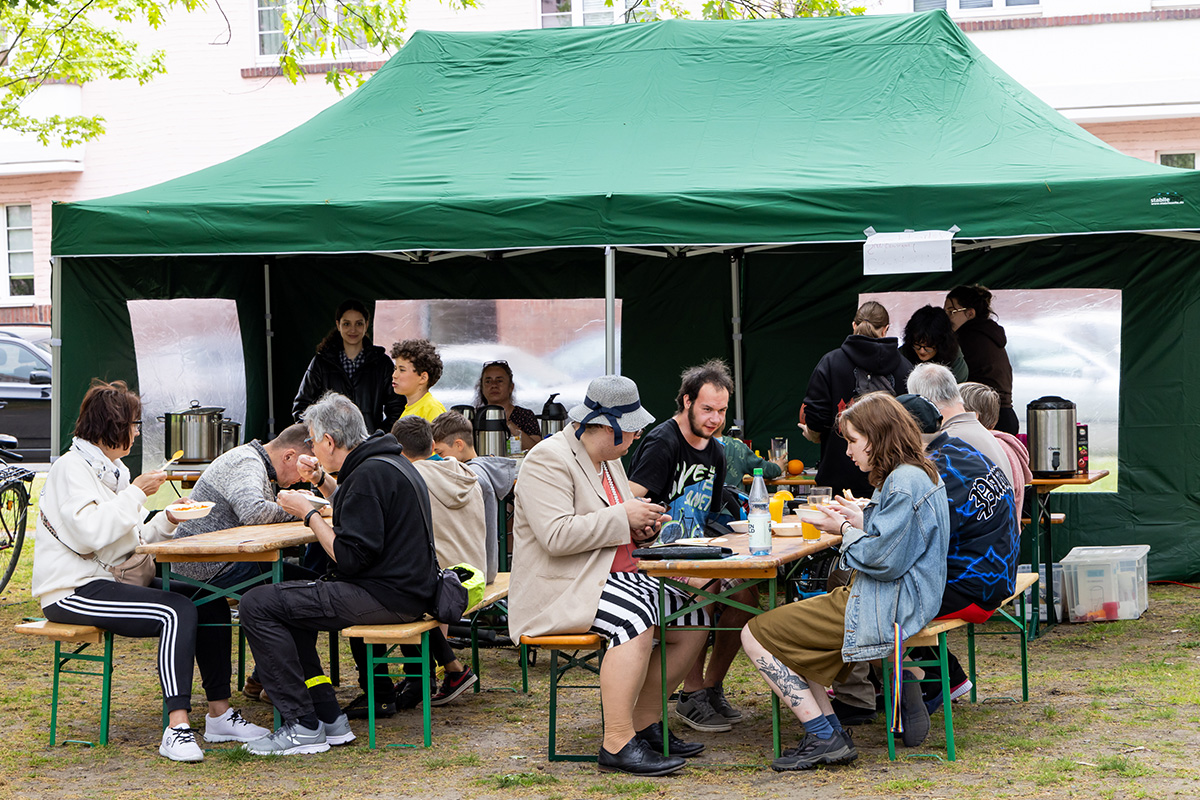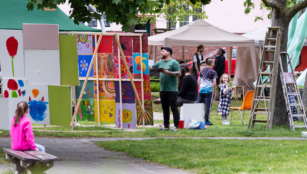 Bis in den frühen Abend wurde gemeinsam gefeiert. Dazu gab es Curry, Waffeln und alkoholfreie Cocktails, Leinwände zur spontanen Malerei, einen Krocket-Parkour und Livemusik der „B Hausband“.