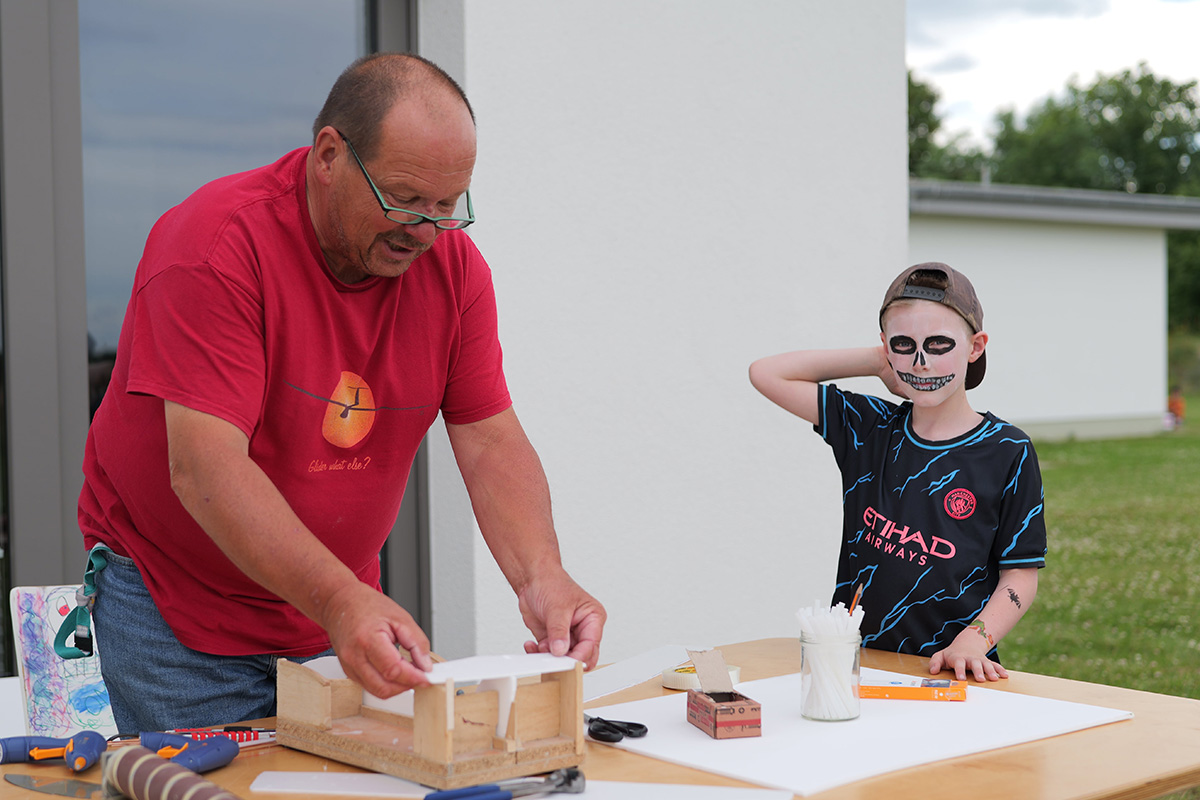 Mehr als 100 Besucher*innen nutzten die Gelegenheit und freuten sich über vielfältige Aktionen ganz unterschiedlicher Art. Man begab sich auf Schatzsuche, machte kleine Mountainbike-Touren durch den angrenzenden Wald, bestritt Bobby Car-Rennen und schoss unzählige Bälle auf die Torwand. Man konnte eigene Modellflieger basteln, sich kunstvoll schminken lassen, Krocket spielen und noch vieles mehr. Für das leibliche Wohl war am Rande natürlich auch gesorgt.