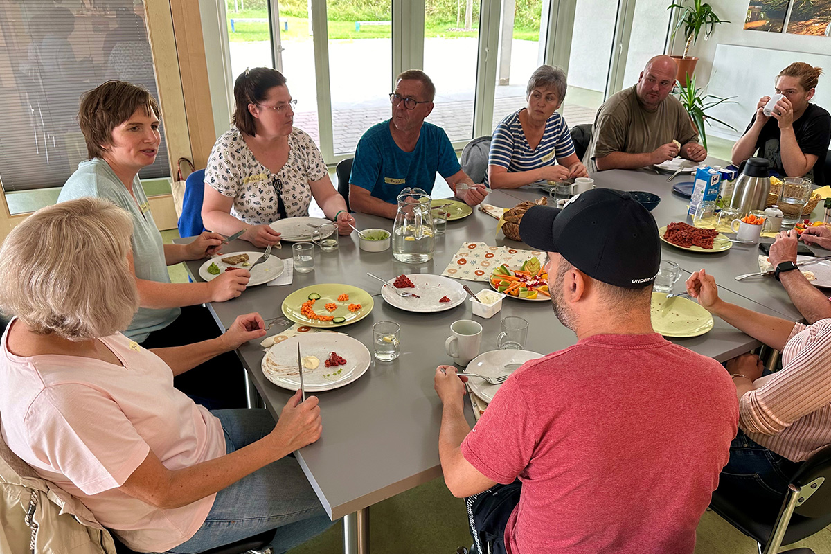 Lehrer Alp Erginer zog nach dem Essen zum Abschluss ein positives Fazit: „Ich habe heute viele neue und leckere Rezepte kennengelernt.“ Begeistert zeigte er sich auch vom Austausch mit den Hauswirtschaftskräften aus Wohnangeboten der Stiftung und von deren Kenntnissen und Erfahrung. Valentina Jegel zum Beispiel versorgt die Bewohner*innen der Gruppe in Schladen schon seit 24 Jahren. Der heutige Input zu Theorie und Praxis sei sehr bereichernd gewesen – und wertvoll gerade für jüngere Kolleginnen und Kollegen, die noch nicht seit Jahrzehnten in der Küche stehen. „Wir kochen ja oft gemeinsam mit den Kindern und Jugendlichen“, berichtet die Hauswirtschafterin.