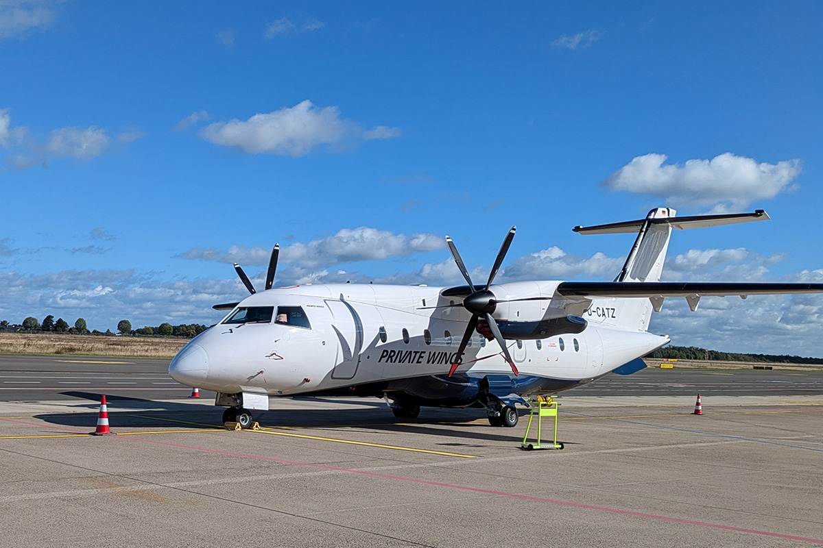 Flughafenmitarbeiterin Susanne Westphal begrüßte die Gäste vor Ort und gab einen umfassenden Überblick. Der Flughafen Braunschweig-Wolfsburg spiele eine wichtige Rolle in der regionalen Anbindung und sei ein bedeutender Knotenpunkt für die Luftfahrt in Niedersachsen. Zudem sei er ein wichtiger Standort für die Luftfahrtindustrie, insbesondere im Bereich der Forschung und Entwicklung.