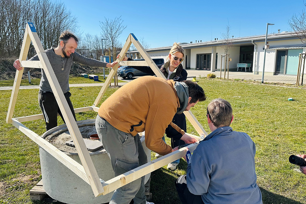 Fünf Helfer*innen kamen in diesem Jahr zu Besuch, um den Kindern einer Wohngruppe in Wolfenbüttel einen besonderen Wunsch zu erfüllen: Ein mobiler Stall zur Haltung von vier eigenen Hühnern. Das sogenannte Hühnermobil ermöglicht, die Tiere regelmäßig auf frisches Grünland umzusetzen. So bleiben sie gesund, die Weideflächen werden geschont und die Kinder lernen hautnah, wie Lebensmittel wie Eier nachhaltig und artgerecht produziert werden. Gleichzeitig übernehmen sie Verantwortung für die tägliche Versorgung der Tiere – eine wertvolle Erfahrung, die Rücksichtnahme und Achtsamkeit fördert.