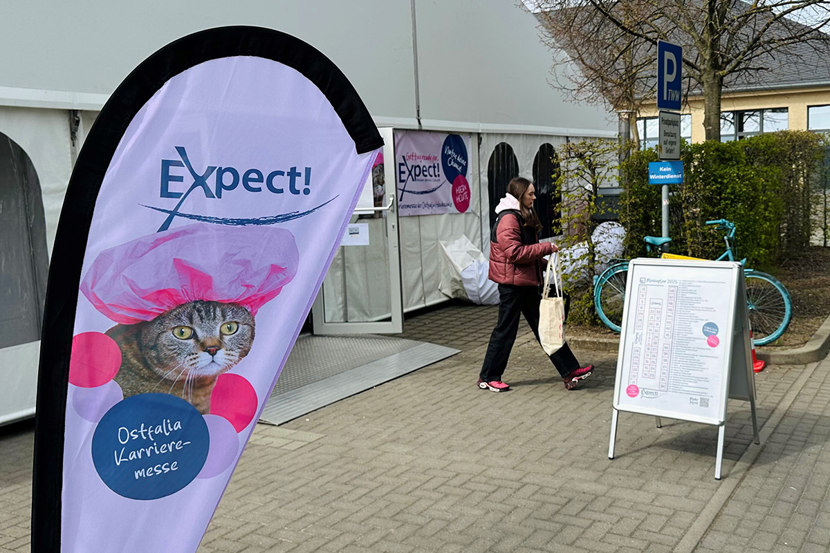 In der vergangenen Woche lud die Hochschule Ostfalia zur Karrieremesse Expect! auf das Gelände am Wolfenbütteler Exer ein. Das Event richtete sich an Studierende, die ihre beruflichen Perspektiven für die Zeit nach dem Studium ausloten wollten. Mit 48 beteiligten Unternehmen aus verschiedenen Branchen – darunter Sozialwesen, IT, Industrie, Finanzbranche und Kommunen – bot die Messe eine geeignete Plattform zu Berufsorientierung und persönlichem Kennenlernen.